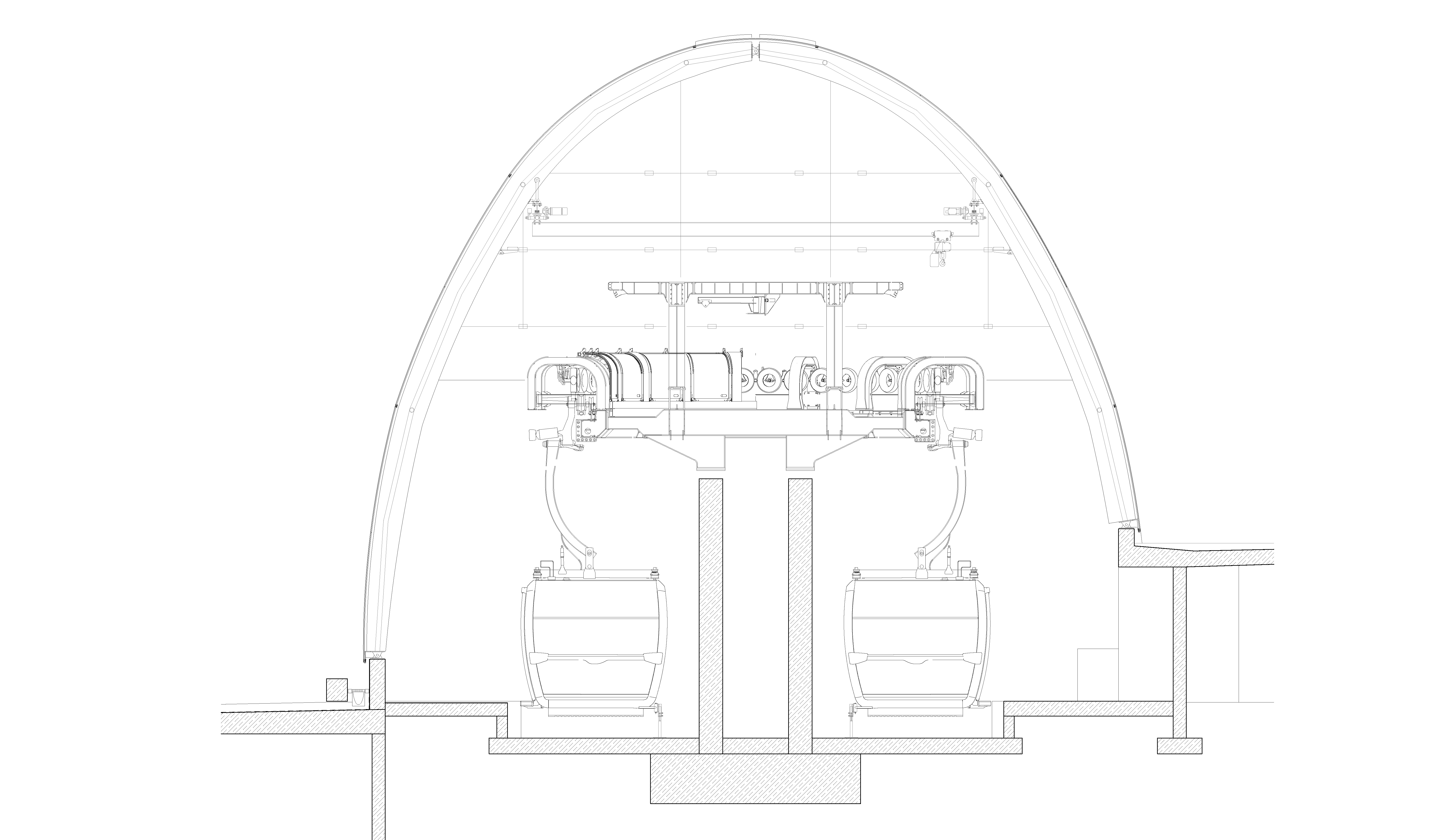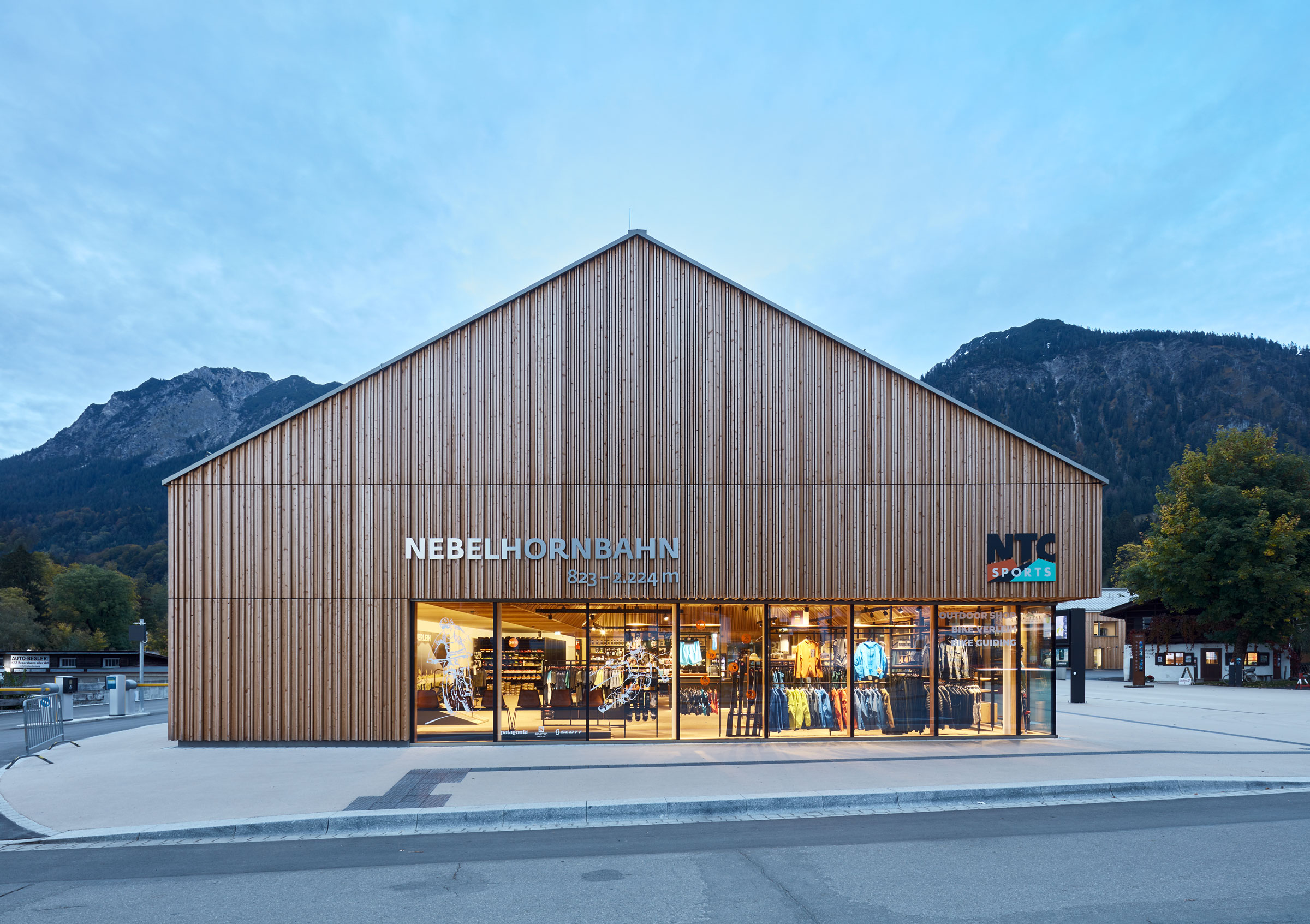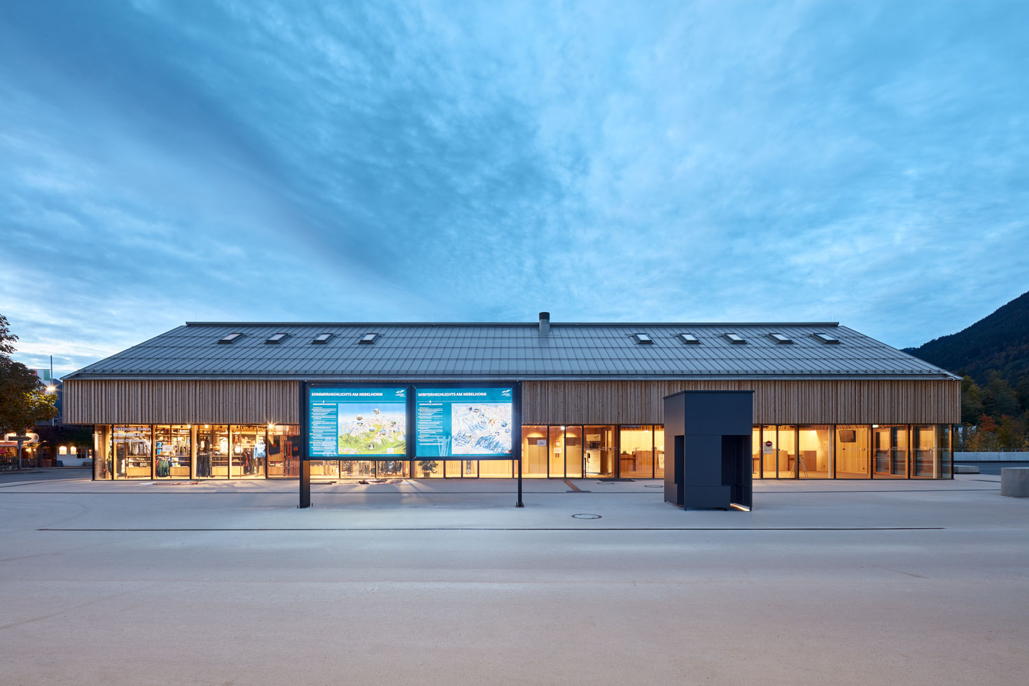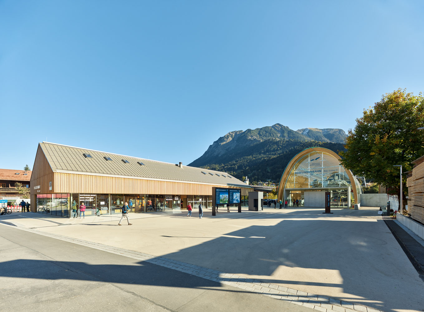 The Cable Car station is interpreted as a natural part of Oberstdorf’s public space. It serves as a central point of contact for visitors. Reducing the architecture to its pure function underlines its significance as a direct interface between the local area and the alpine landscape. A regular row of timber parabolas, encased in curved laminated safety glass, creates a shimmering transparent volume that radiates lightness and openness. Depending on the direction of travel, the structure is perceived as a gateway to the mountains or to the valley.