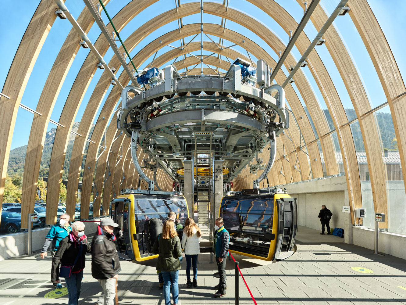 Nestled in the Allgäu Alps, the market town of Oberstdorf has grown into a renowned summer and winter sports destination. The existing valley floor Cable Car station to the Nebelhorn has now been replaced and supplemented.