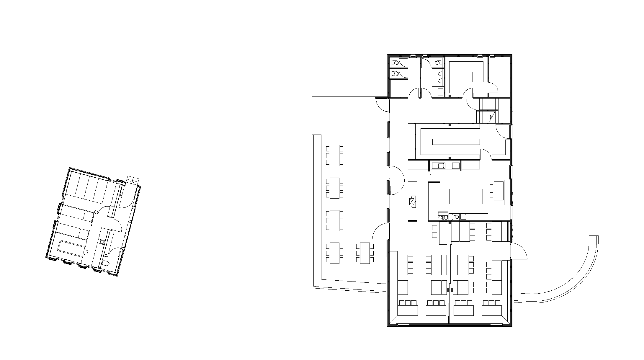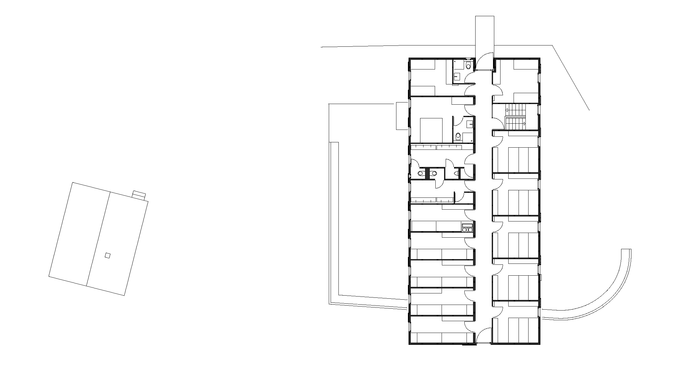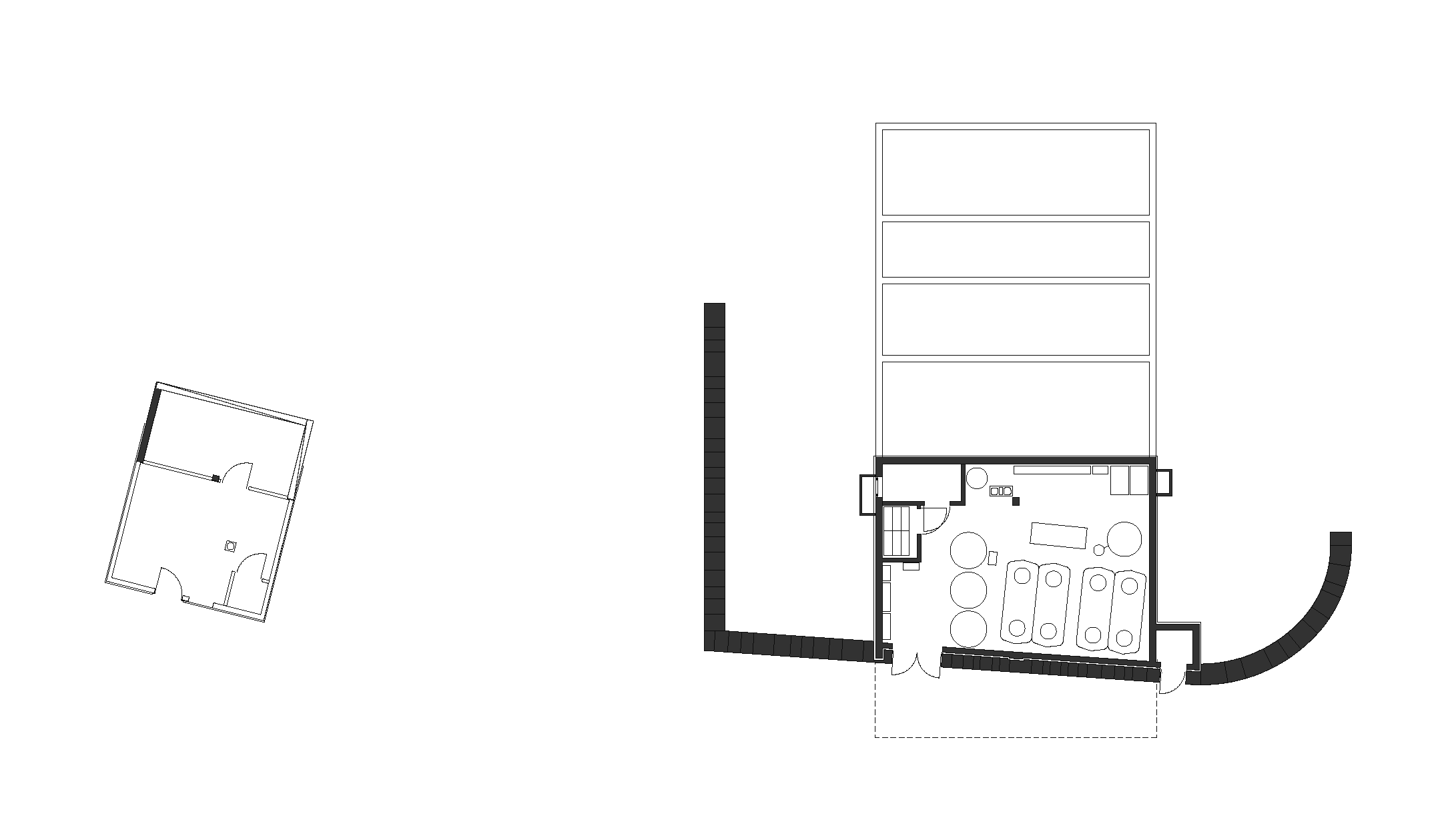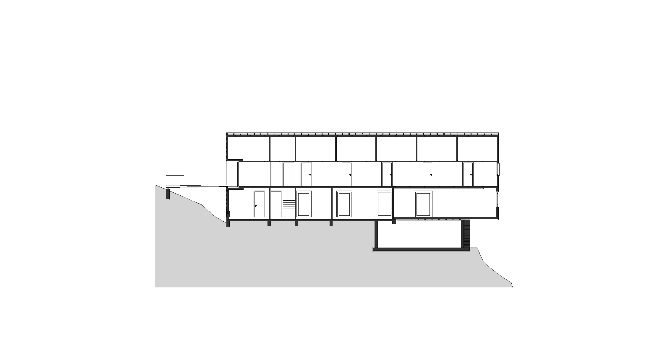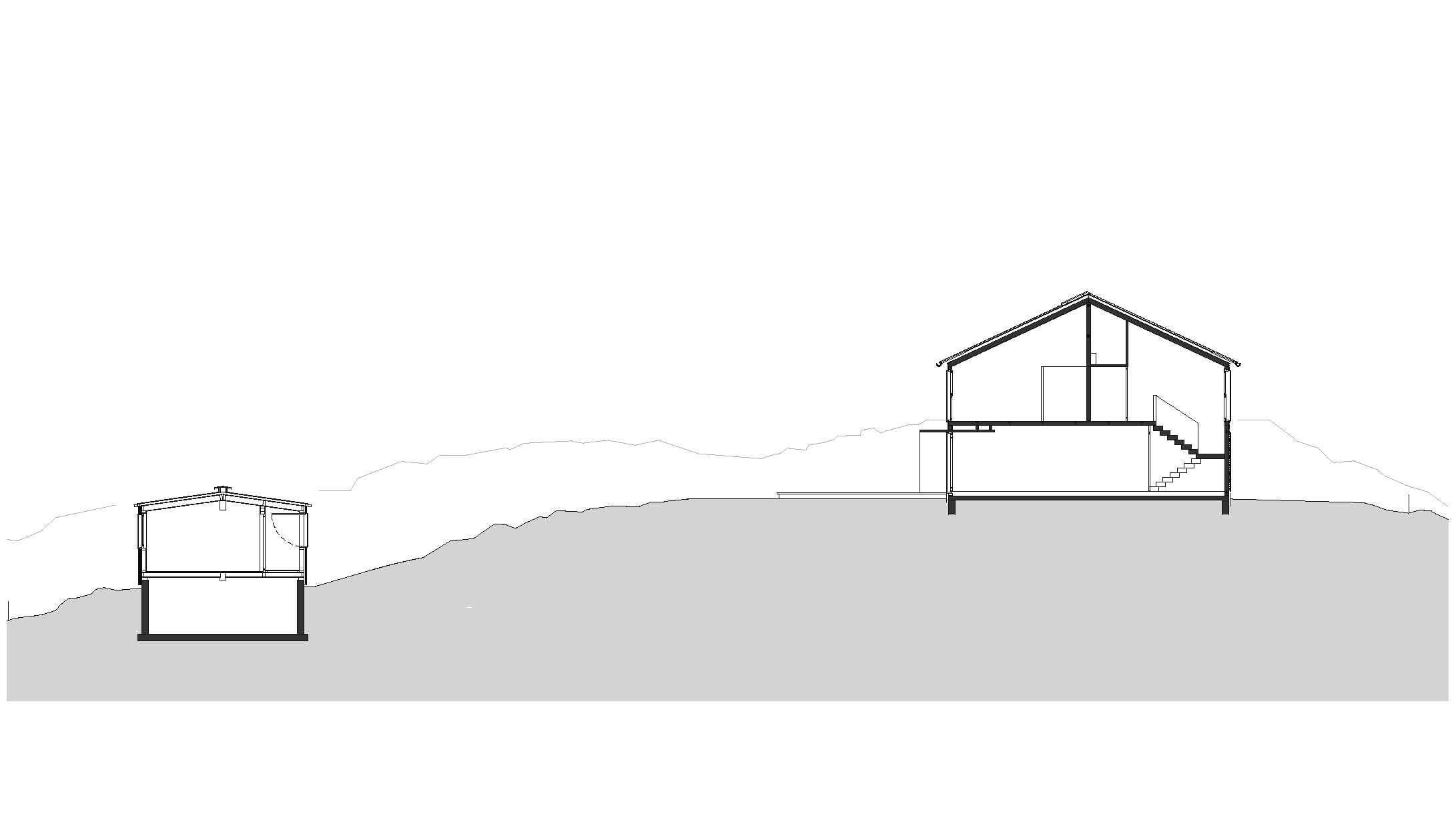 The motto of “innovation through reduction” is reflected in the typo-logical approach. A compact structure with a pitched roof, cantilevered over a retaining wall towards the reservoir, has replaced the old building. The concrete base, which has been clad with stone from the surrounding area, has been back filled with rubble from the demolition, the house itself consists of glue-laminated spruce timber. The outer walls of the ground floor act as support plates and are, in order to reduce the load on the cantilever, hinge jointed to the base. Mounted to these cantilevers is the large-format picture-window on the gable wall. Suspended from this is the floor plate of the restaurant. The bracing is provided by the floor plate and by the roof, which also acts as a foundation. A small, thermally insulated auxiliary building serves as winter shelter and accommodation for self-catering visitors.