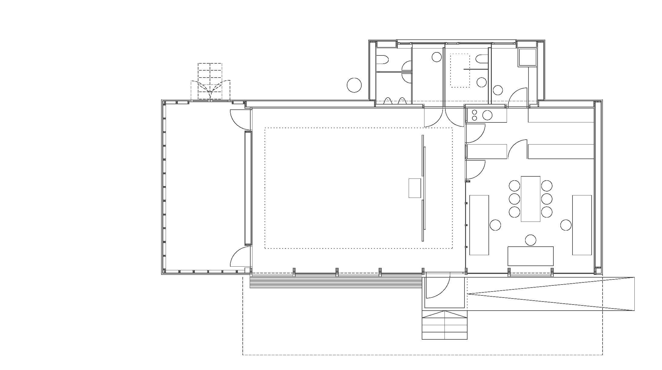 Due to the flood levels in the area, the house stands on stilts, which has already proven very successful this summer. On these short stilts a timber construction is set, which consists mainly of fir timber. The cubic structure is closed on three sides, heavily glazed on the south side and shaded by a horizontal laminate roof. The necessary toilet facilities are attached as an independent unit to the cubic main body and they have a steep slopping roof, in which a photovoltaic system is integrated. An optimised building envelope and a heat recovery system, guarantee very low energy consumption.