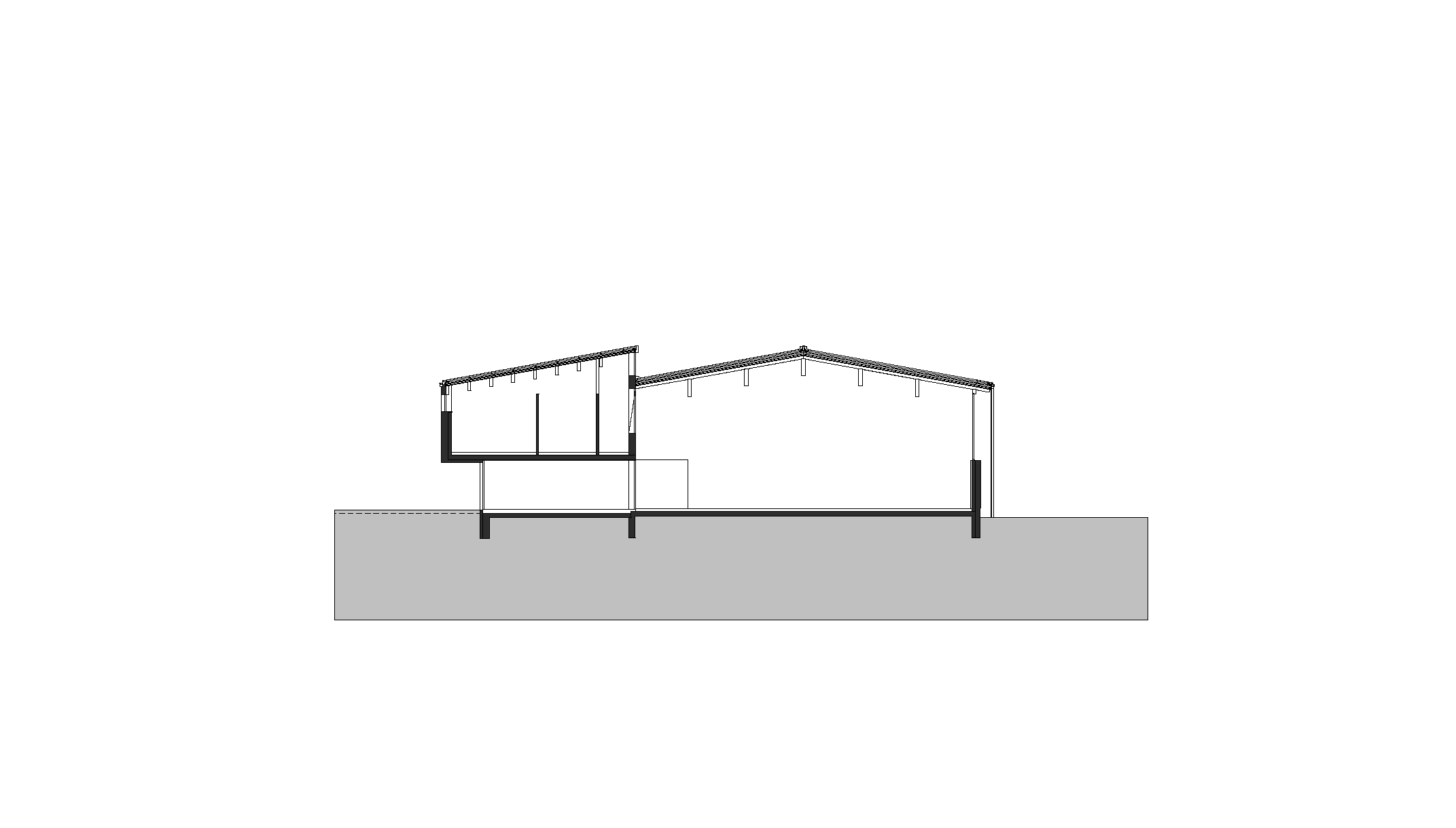 The roof arrangement and the asymmetrically distributed openings disperse daylight throughout. As a result of the clear use of materials and the modular timber windows, the structure integrates itself harmoniously into the local building fabric without direct appropriation of the language of the surrounding farmsteads.