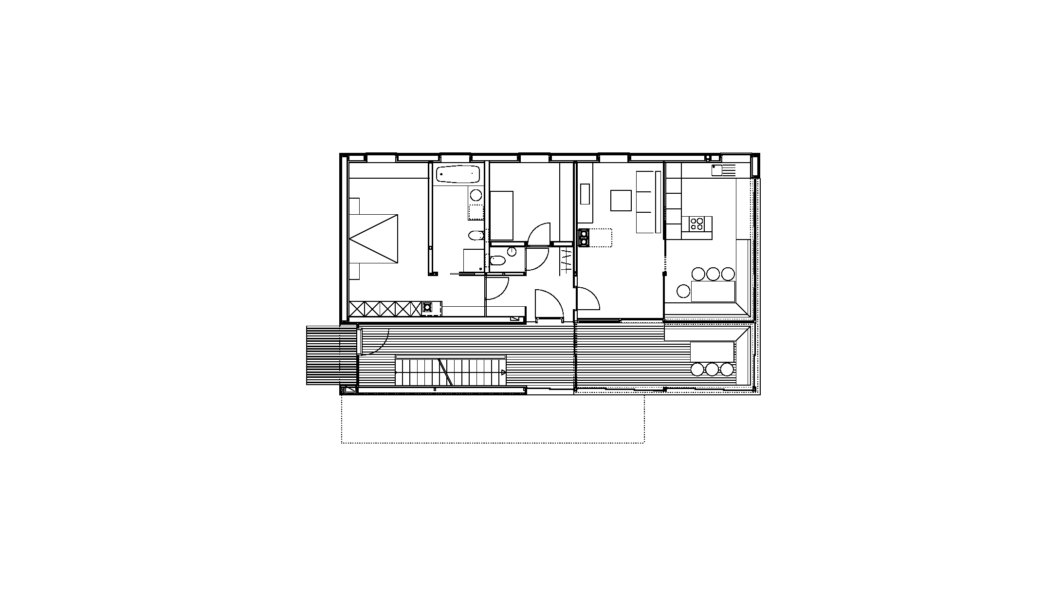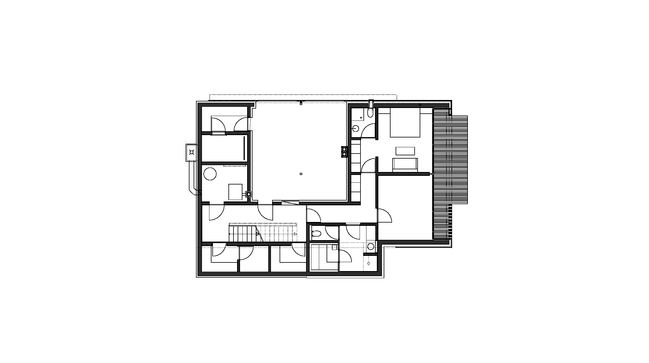 While its design and material choices were inspired by local traditions, the building, located perpendicular to the slope, adapts to modern domestic needs. Particularly noteworthy is the new interpretation of the “Schopf” – an arbour area, which is often attached to the long side of farm houses and can be closed with shutters, serving as a sunny entrance, work space or sitting area.