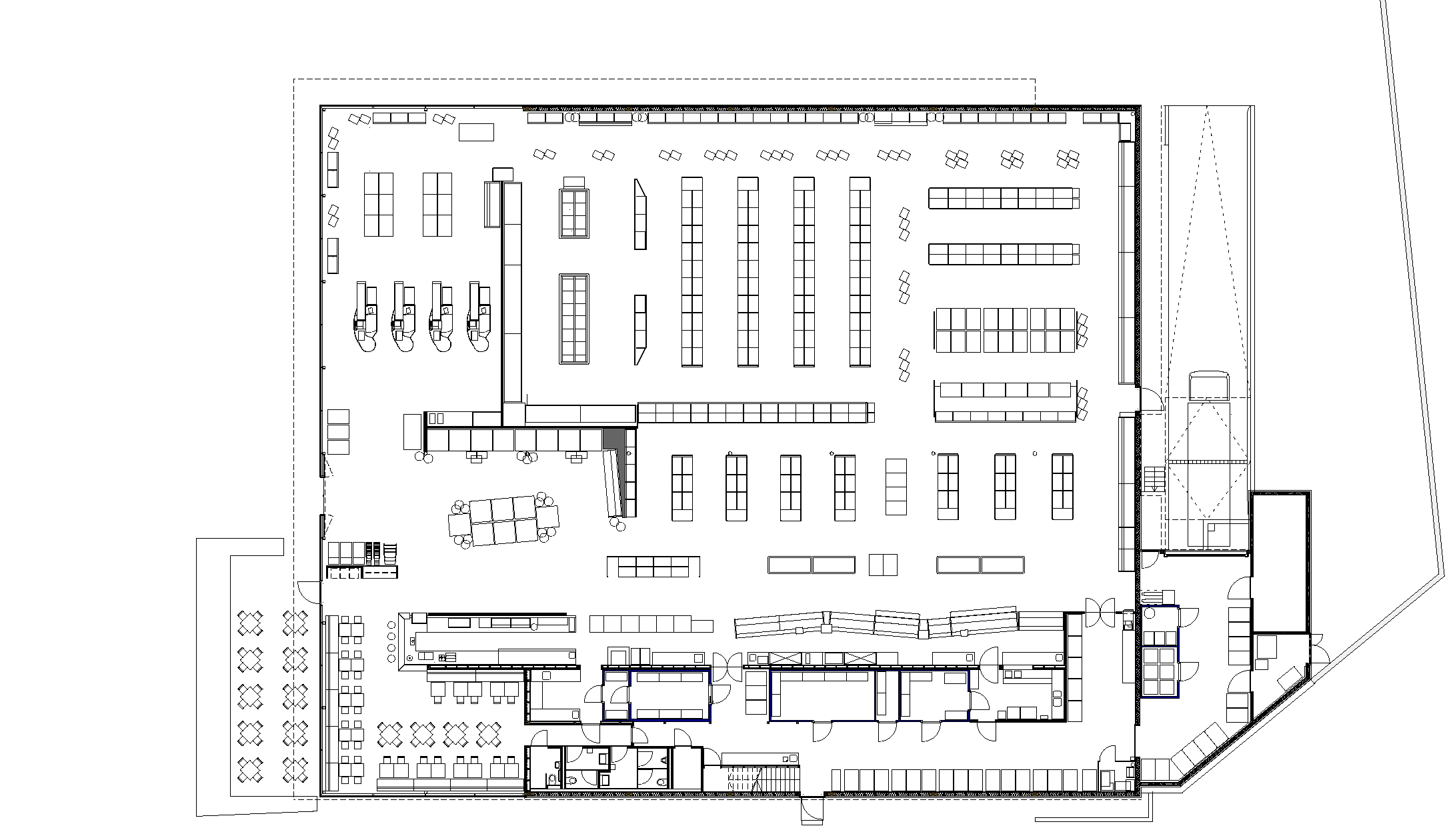 Originally built in the 1990’s, Sutterlüty in Lochau had to be rebuilt due to structural defects which had caused damage to the roof. The existing foundations had to be considered with regards to size and design making the load transfer points and roof spans for the new construction, fixed. The new generation Sutterlüty stores offer high-end market like spaces and a unified operating principle, while the external appearance of all stores are unique.
