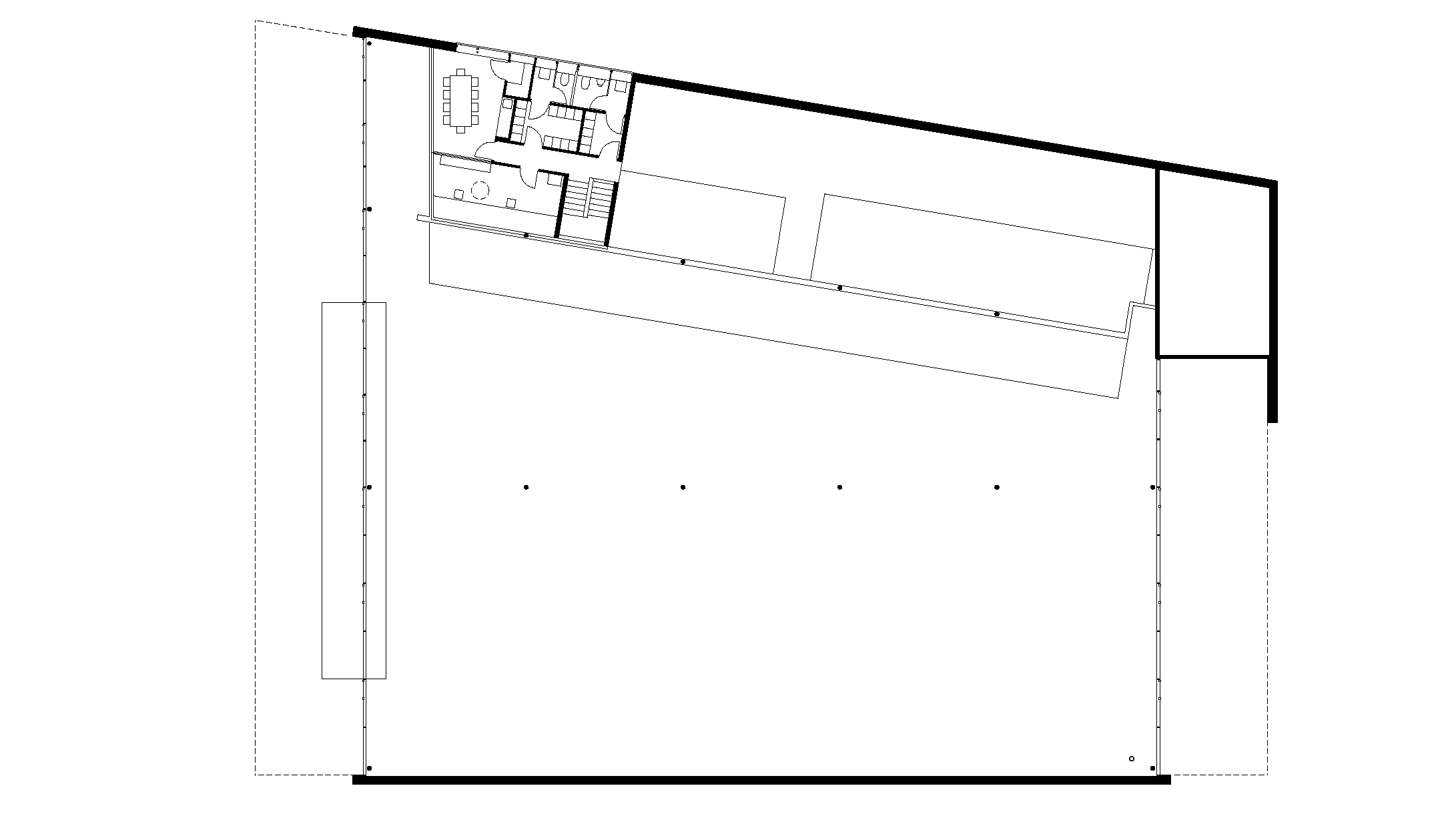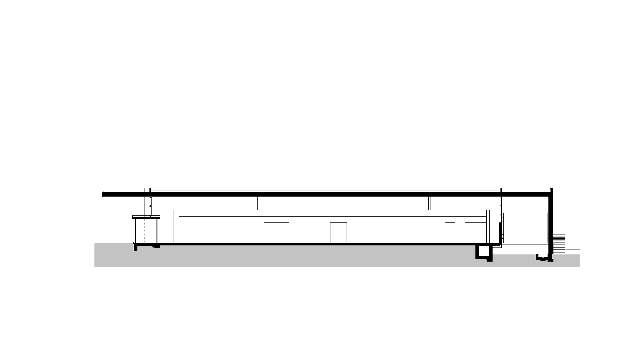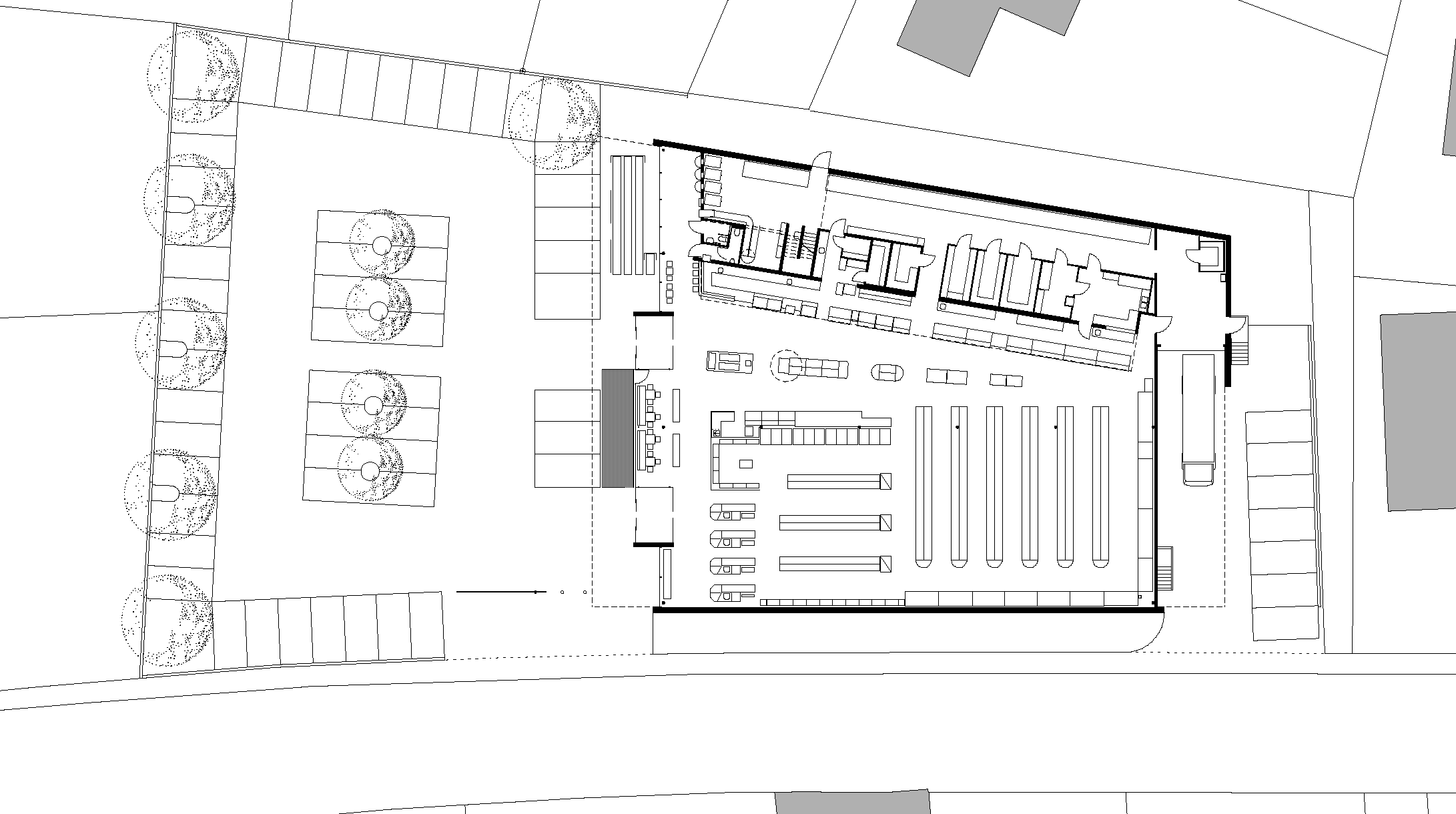 In addition to quick assembly, the specific material properties of the timber roof slab also prevent the formation of a thermal bridge and allow a smooth transition of the roofing slab through the glazed front facade into the projecting canopies. This “monolithic” roof slab also has a structural function, namely to brace the building.